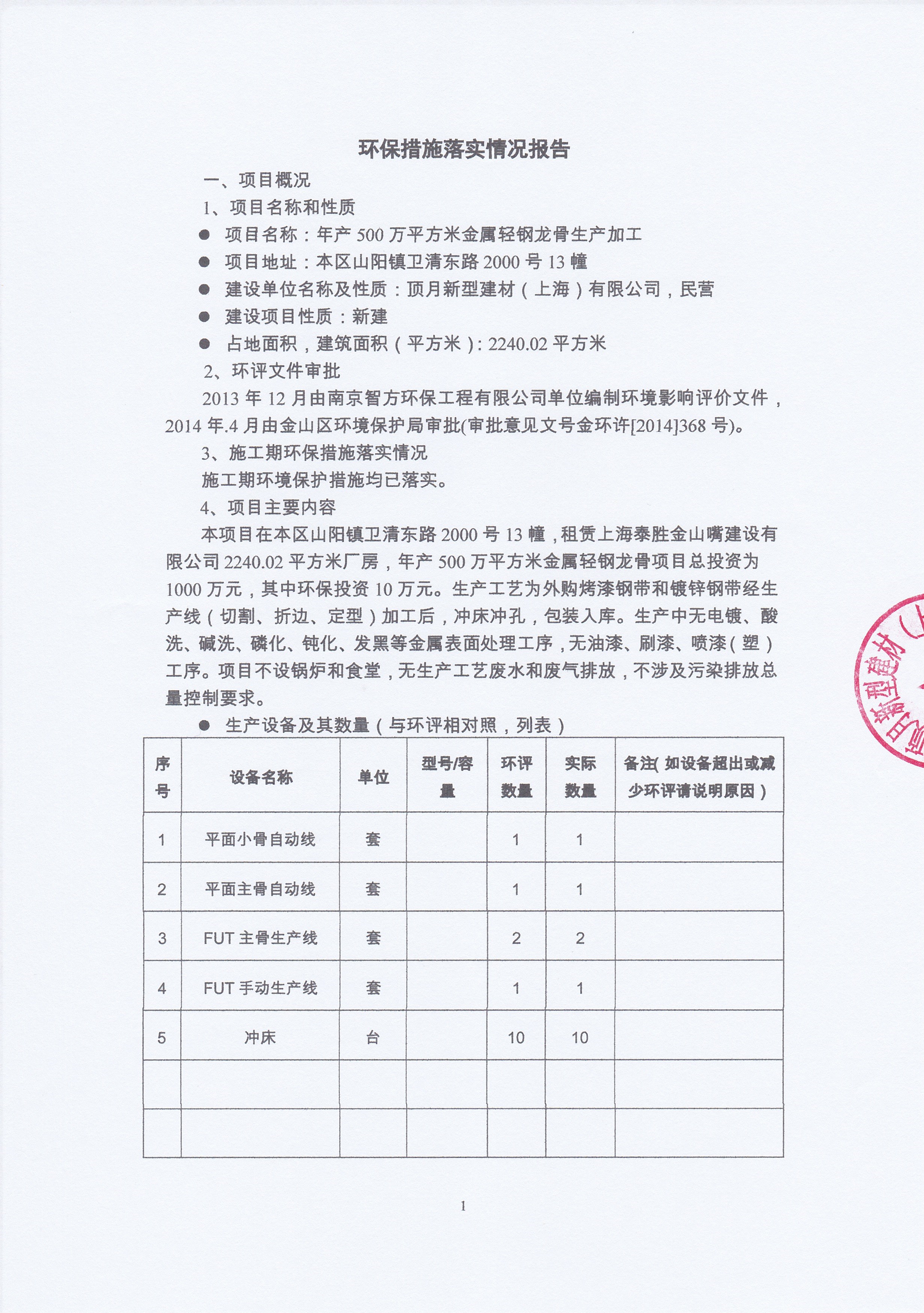 环保措施落实情况报告